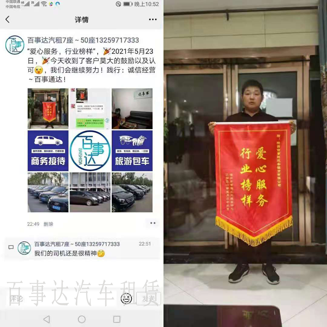 “弘揚(yáng)延安精神·堅(jiān)定初心使命”2021年5月23日深圳常德義工服務(wù)中心組織人員來陜參觀學(xué)習(xí),陜西百事達(dá)汽車租賃有限公司“愛心大巴”助力深圳常德義工服務(wù)中心延安紅色游,陜西百事達(dá)汽車租賃有限公司是一家主要為西安企事業(yè)單位,中外賓客,港澳臺(tái)同胞等社會(huì)各界提供西安租班車,西安旅游大巴車租賃,西安客車租賃服務(wù)的公司。在當(dāng)今競(jìng)爭(zhēng)激烈的汽車租賃行業(yè)中,陜西百事達(dá)租車公司克服了重重困難,以其真誠(chéng)的敬業(yè)精神,完善的服務(wù)與管理贏得了眾多客戶得贊許和認(rèn)同。同時(shí)也創(chuàng)造了西安租車公司的品牌。